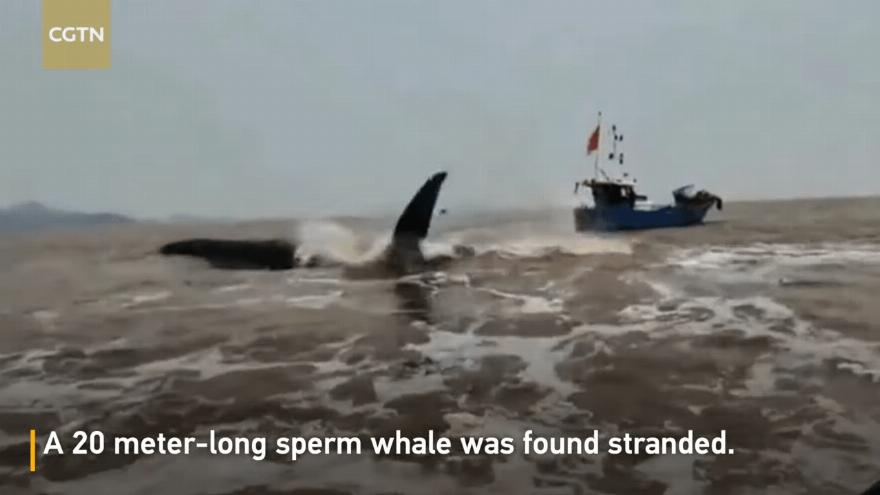 Αφού είδαν τη μακριά φάλαινα μήκους 65 ποδιών, ήξεραν ότι έπρεπε να κάνουν μεγάλη προσπάθεια για να μπορέσουν να πάρουν τη φάλαινα πίσω στη θάλασσα καθώς είχε κολλήσει περίπου 750 μέτρα από την ακτογραμμή της παραλίας Zhejiang, μια κινεζική επαρχία. Ευτυχώς, η βοήθεια έφτασε από το τοπικό γραφείο αλιείας.
