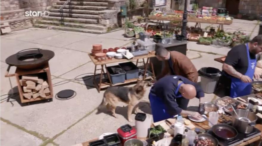 Με φόντο τη γραφική πλατεία «κόκκινοι» και «μπλε» κλήθηκαν να μαγειρέψουν, για να κερδίσουν την πρόκρισή τους στην τελική 5άδα του MasterChef 2023. Την στιγμή που το άγχος είχε κορυφωθεί και οι παίχτες έδιναν τον καλύτερο ευατό τους, έκανε την εμφάνιση του ένα σκυλάκι του χωριού! Ο γνωστός σεφ με τον που τον είδε, τον φώναξε κοντά του αποκαλώντας τον “Παιδί μου” και τον κέρασε και μιά λιχουδιά από την κουζίνα του Μάστερ Σεφ.