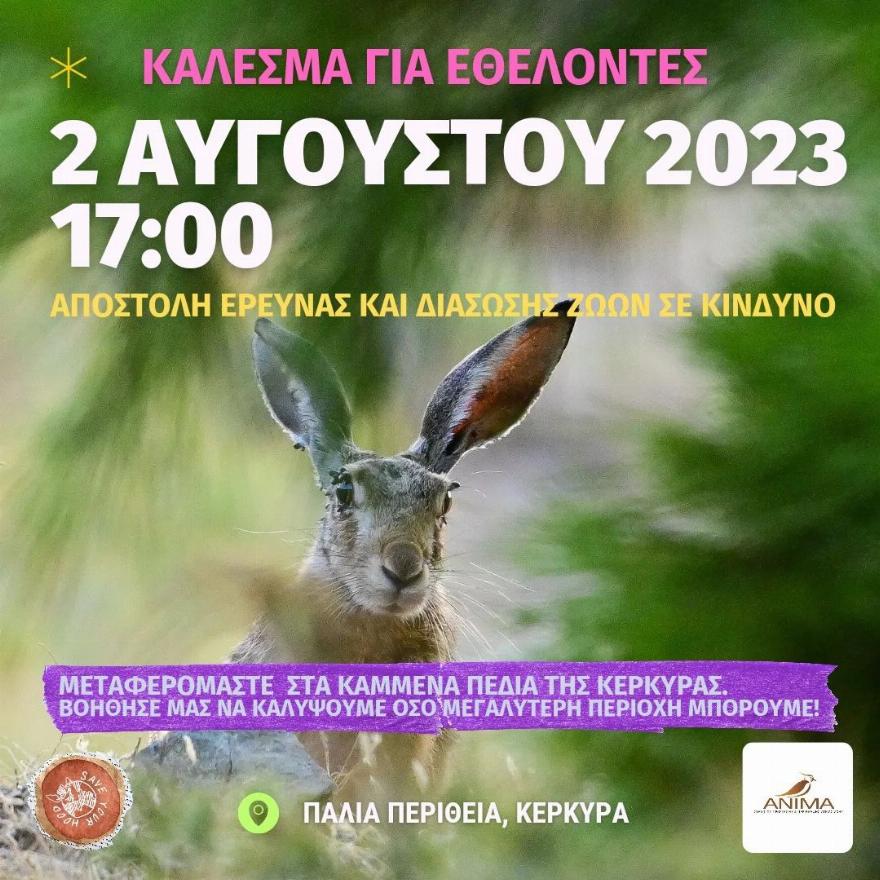 Την Τετάρτη 2 Αυγούστου, ο οργανισμός προστασίας του περιβάλλοντος «Save Your Hood» διοργανώνει αποστολή έρευνας και διάσωσης ζώων στα καμμένα εδάφη της βόρειας Κέρκυρας.
