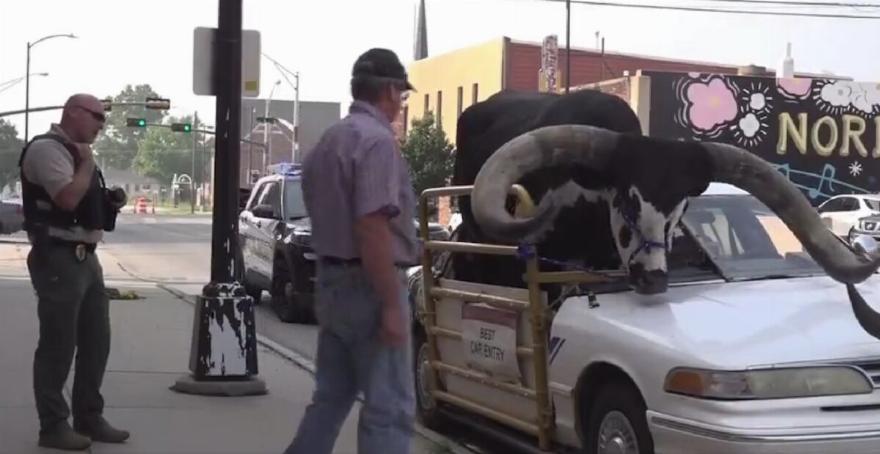 Απίστευτο και όμως αληθινό , ένας τεράστιος τάυρος εθεάθη ως συνοδηγός σε ένα αμάξι στο Νόρφολκ της Νεμπράσκ. Η αστυνομία ανταποκρινόμενη σε κλήσεις για έναν οδηγό που οδηγούσε με συνοδηγό μια «αγελάδα» στο αυτοκίνητό του, ανακάλυψε έκπληκτη πως πράγματι ένας ντόπιος άνδρας μετέφερε έναν τεράστιο ταύρο Watusi με το όχημά του.