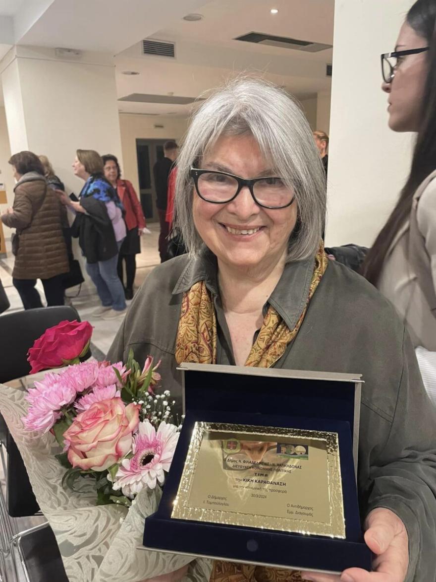 Ανάμεσα στις γυναίκες που τιμήθηκαν, βρισκόταν και η κυρία Κική Καραθανάση, πρόεδρος του Φιλοζωικού Συλλόγου Νέας Φιλαδέλφειας, για την αφοσίωσή της στη φροντίδα και την προστασία των ζώων. Μέσω του έργου της, έχει βοηθήσει στην υιοθεσία περίπου 3.000 αδέσποτων ζώων τα τελευταία 20 χρόνια και έχει συμβάλει στο να μην υπάρχει πλέον αδέσποτο σκυλί στην περιοχή.