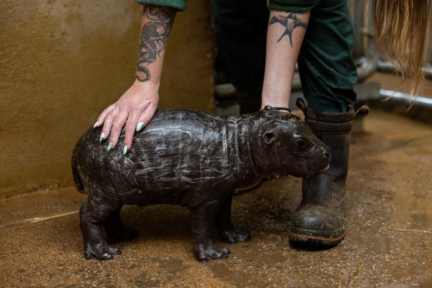 Ο μικρός πυγμαίος ιπποπόταμος που γεννήθηκε πρόσφατα στο Αττικό Ζωολογικό Πάρκο δεν ξεχωρίζει απλά για τη χαριτωμένη του εμφάνιση, αλλά έχει εξαιρετική σημασία για τη διατήρηση του είδους. Οι ειδικοί εξηγούν ότι ο συγκεκριμένος πυγμαίος ιπποπόταμος ανήκει σε μια σπάνια και απειλούμενη κατηγορία, με μόλις 2.000 – 2.500 να ζουν στη φύση, κυρίως σε ορισμένες χώρες της Αφρικής. Είναι πέντε φορές μικρότερος και 10 φορές ελαφρύτερος από τους κοινούς ιπποπόταμους και διαθέτει πιο μικρή άνω γνάθο.