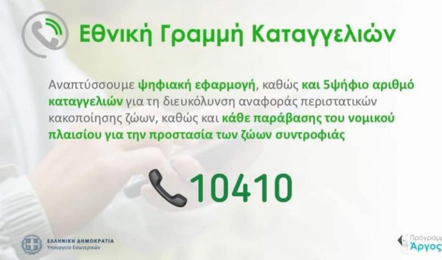 Οι πολίτες μπορούν να απευθύνονται στον τηλεφωνικό αριθμό “10410″, ανώνυμα ή επώνυμα, για να παρέχουν πληροφορίες ή να καταγγέλλουν περιστατικά κακοποίησης ζώων, ενώ στην ιστοσελίδα της Ελληνικής Αστυνομίας (www.astynomia.gr) όπου υπενθυμίζεται ότι υπάρχουν χρήσιμες οδηγίες και συμβουλές για την προστασία των ζώων συντροφιάς.