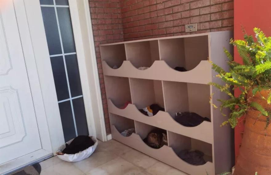 Ο δήμαρχος δημοσίευσε δύο φωτογραφίες της εισόδου του σπιτιού του, στις οποίες φαίνεται η ξύλινη κατασκευή με 18 δωμάτια για τις γάτες της αυλής του.