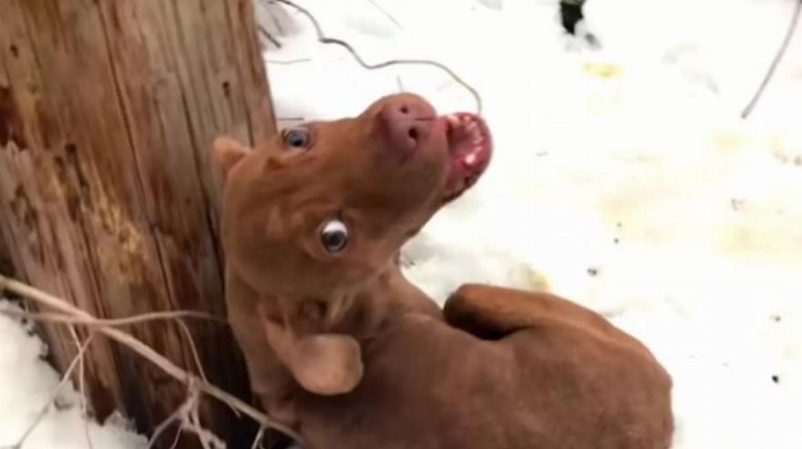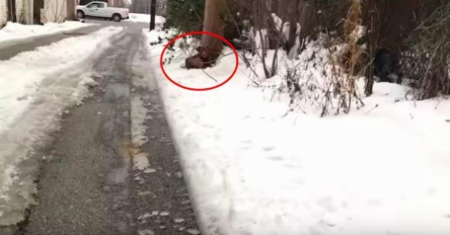 “Ήταν κουλουριασμένος σε μια σφιχτή μπάλα στο χιόνι δίπλα σε έναν ηλεκτρικό στύλο”, δήλωσε στο The Dodo η Natalie Thomson, υπεύθυνη μάρκετινγκ και ψηφιακής επικοινωνίας της οργάνωσης διάσωσης αδέσποτων του Σεντ Λούις.