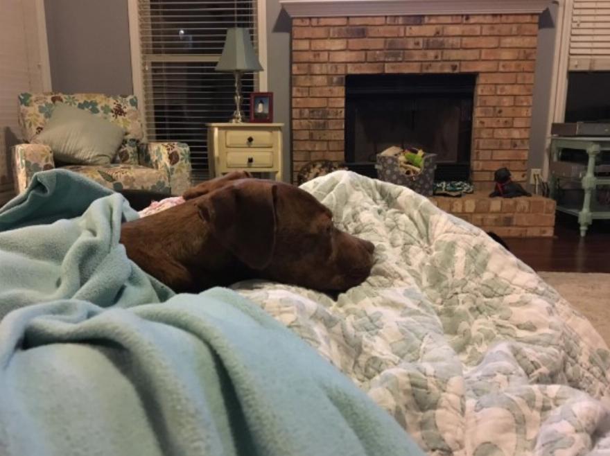 Ο αδέσποτος σκύλος που σώθηκε από το κρύο κατέρρευσε στο πρώτο του κρεβάτι