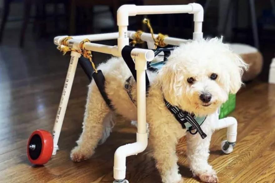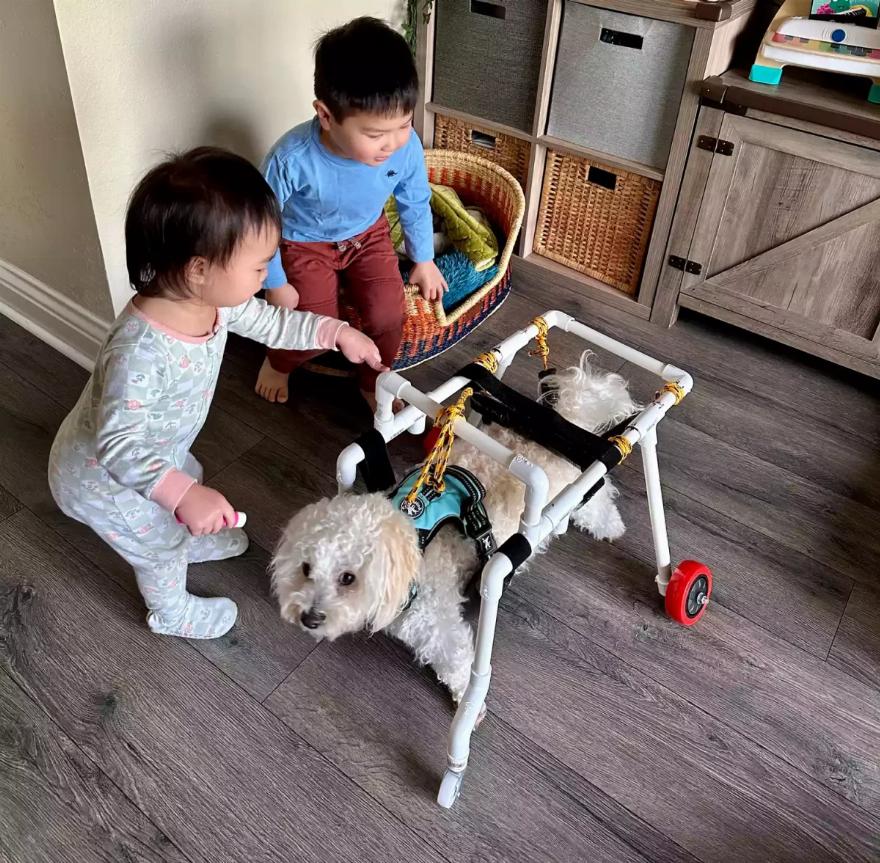 Ο Wong σκέφτηκε μια κούνια για τον σκύλο, την οποία κατασκεύασε από σωλήνα PVC που του είχε περισσέψει από ένα έργο άρδευσης της αυλής. Το υλικό είναι “όχι μόνο ελαφρύ και ισχυρό, αλλά και εύκολο στη συναρμολόγηση χωρίς την ανάγκη ειδικών εργαλείων”, εξηγεί ο Wong.