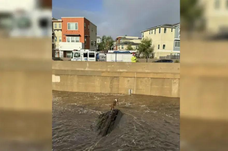 Δύο σκύλοι στάθηκαν τυχεροί όταν οι πυροσβέστες της κομητείας της Σάντα Μπάρμπαρα τα έβγαλαν από ένα πλημμυρισμένο ρυάκι κατά τη διάρκεια της φονικής καταιγίδας της Πέμπτης.