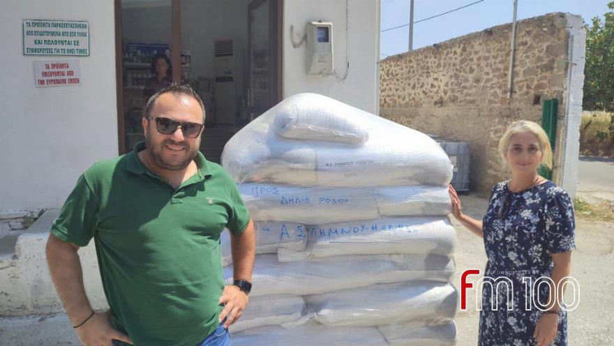 Ο Αγροτικός Συνεταιρισμός Νήσου Λήμνου ΕΝΩΣΗ, με πρωτοβουλία και συνεργασία της Πανελλαδικής Φιλοζωικής Περιβαλλοντικής Ομοσπονδίας, απέστειλε έναν τόνο κριθάρι ζωοτροφών στη Διεύθυνση Πρωτογενών Βιομηχανιών του Δήμου Ρόδου για τη σίτιση της διμοιρίας του νησιού της Ρόδου.