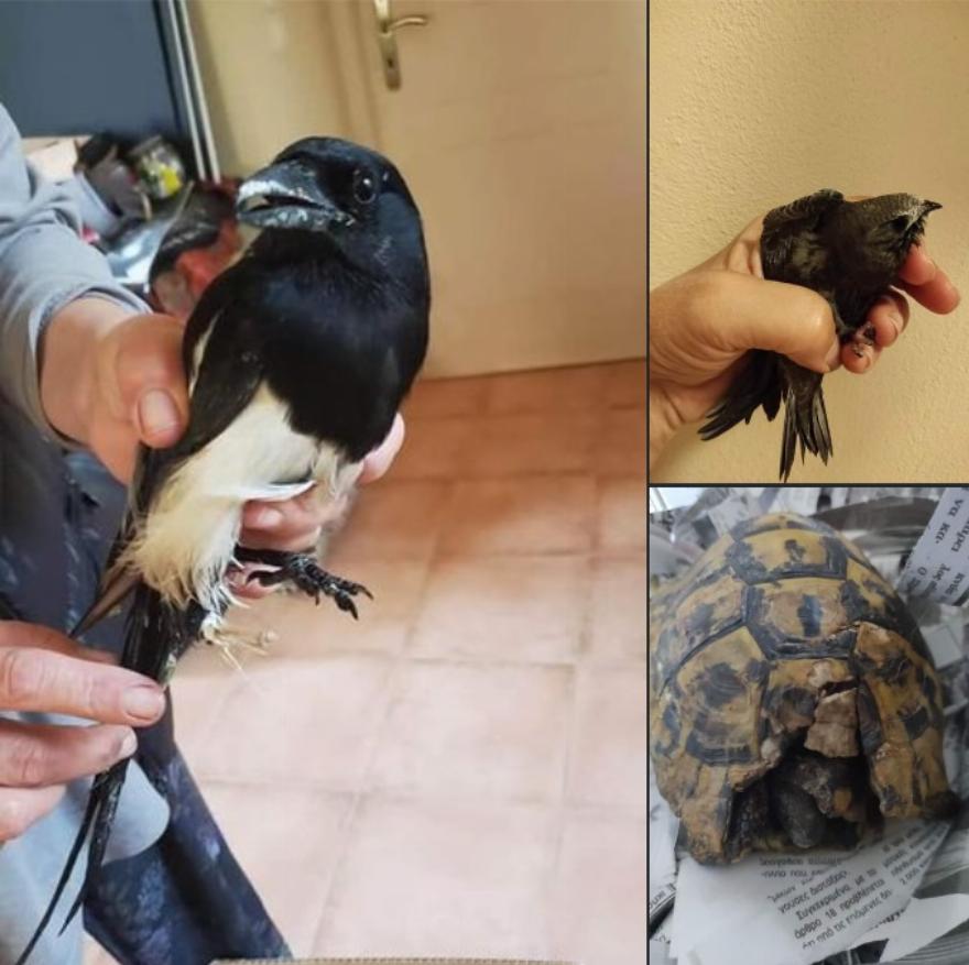 Mια χελώνα τραυματισμένη από χορτοκοπτικό, μια μικρή καρακάξα με ακρωτηριασμένο το ένα κάτω άκρο και η πρώτη για φέτος σταχτάρα ήταν κάποια από τα ζώα που στάλθηκαν από την κ.Πέλλα Καλογήρου στη Δράση για την Άγρια Ζωή στη Θεσσαλονίκη.