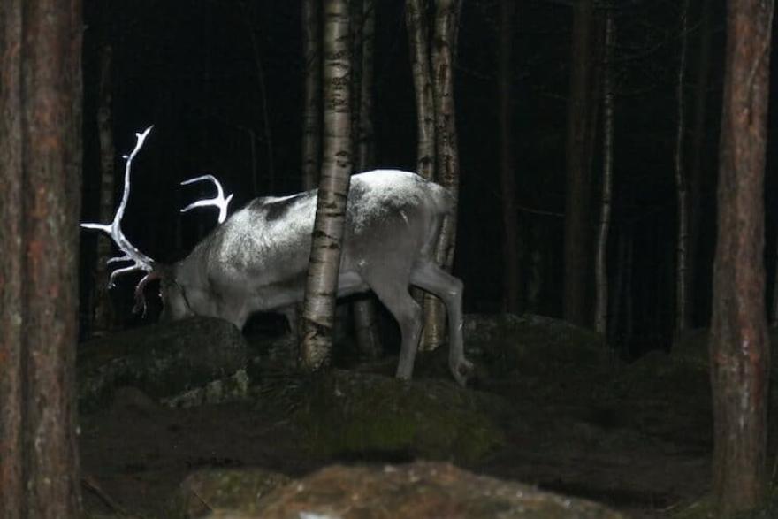 Η φωτογραφία δείχνει την ένωση κτηνοτρόφων ταράνδων στη Φινλανδία να χρησιμοποιεί ανακλαστήρες και φωσφορίζουσα μπογιά προσπαθώντας να αποτρέψει τους θανάτους ταράνδων στους δρόμους, οι οποίοι είναι περίπου 3.950 συνολικά κάθε χρόνο.