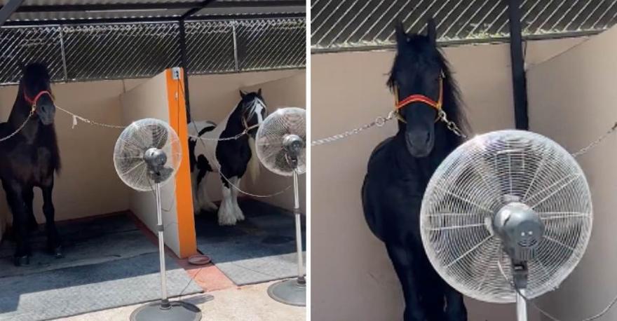 Το βίντεο κοινοποιήθηκε στο TikTok μέσω του λογαριασμού ‘ manuelon20 ‘, όπου μπορείτε να δείτε τα άλογα στους στάβλους τους, ενώ λαμβάνουν καθαρό αέρα από τον ανεμιστήρα που είχε τοποθετηθεί μπροστά τους . Παλεύοντας έτσι τους 45 βαθμούς που έφερε μαζί του το κύμα καύσωνα στο Μεξικό .
