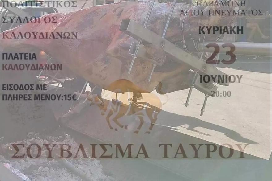 Ο πολιτιστικός σύλλογος Καλουδιανών στα Χανιά διοργανώνει κρητικό πανηγύρι για πρώτη φορά με σούβλισμα ταύρου, την Κυριακή, παραμονή της γιορτής του Αγίου Πνεύματος. Ωστόσο, οι αντιδράσεις ξεκίνησαν εδώ και μέρες, όταν κυκλοφόρησαν οι αφίσες, με αρκετούς χρήστες του διαδικτύου να καταδικάζουν την πράξη ως βάρβαρη.