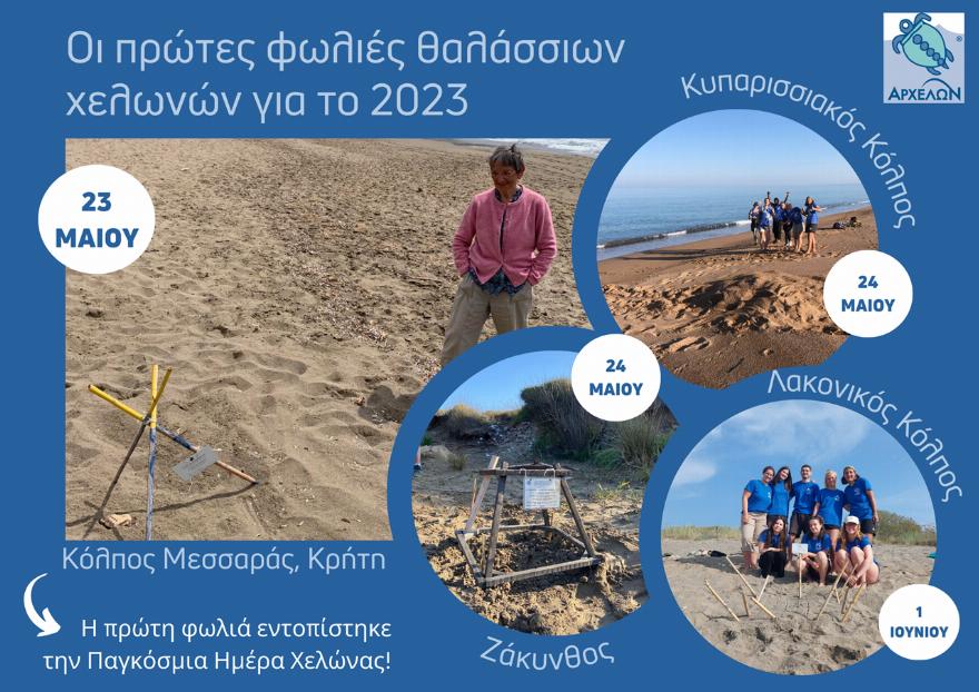 Κάθε χρόνο από τα τέλη Μαΐου μέχρι και τα τέλη Ιουλίου σε ορισμένες παραλίες της Ελλάδας παρατηρούνται θαλάσσιες χελώνες να βγαίνουν από τη θάλασσα τη νύχτα για να ωοτοκήσουν. Οι φωλιές γίνονται με προσοχή μέσα στη ζεστή άμμο και εκεί οι χελώνες κρύβουν τα αυγά τους. Ξαναμπαίνουν στο νερό και πίσω τους στην παραλία έχουν αφήσει χαρακτηριστικά ίχνη, από τα οποία καταλαβαίνουμε ότι υπάρχει στην τοποθεσία αυτή «δραστηριότητα» ωοτοκίας.