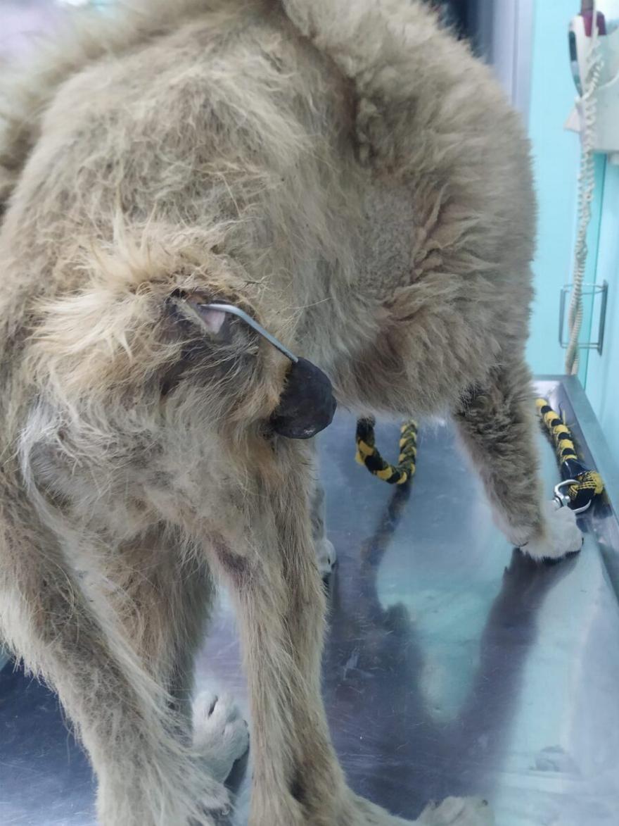 Το μωράκι είναι σε πολύ άσχημη κατάσταση. Φαίνεται να έχει χειρουργηθεί πριν από ένα μήνα περίπου.