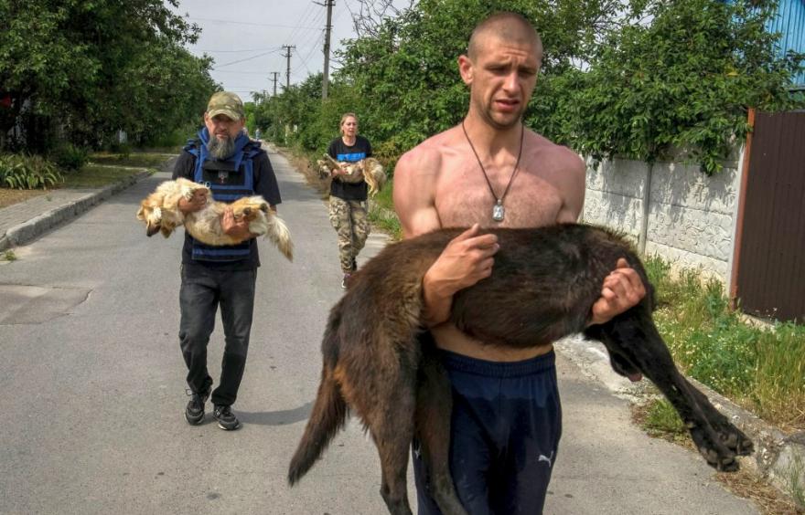 Οι εθελοντές του Χάρκοβο κατάφεραν να σώσουν περισσότερα από 100 ζώα τις ημέρες μετά τη ρήξη του φράγματος.