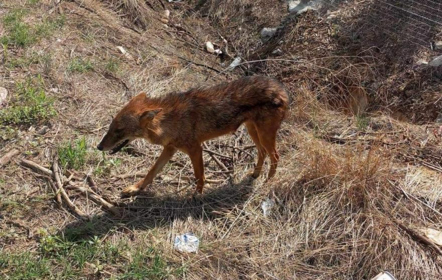 Ένα ταλαιπωρημένο τσακάλι εντοπίστηκε από έναν άνδρα κοντά σε κατοικημένη περιοχή στη Γυρτώνη, έξω από τη Λάρισα. Το ζώο, πιθανόν σε αναζήτηση τροφής, δεν φάνηκε να φοβάται την ανθρώπινη παρουσία, αν και είναι σπάνιο να εμφανίζεται σε τέτοιες περιοχές.