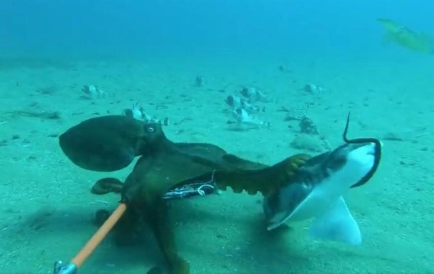 Η επική μάχη ενός χταποδιού με έναν μικρό καρχαρία