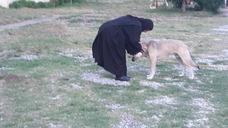 Ο μικρός σκύλος, ο οποίος εκφοβιζόταν από το “αφεντικό” του, ζει ευτυχισμένος στην Ιερά Μονή Παναγίας Γουμεράς στη Μακρινίτσα Σερρών .