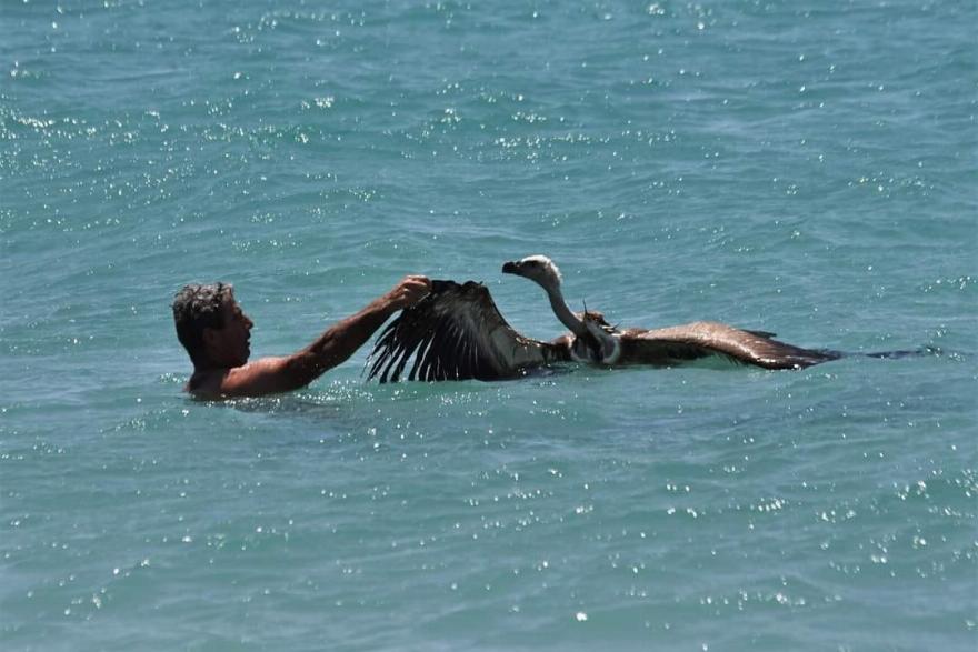 Την περασμένη Παρασκευή (28/7) σε μια απόκρημνη παραλία στη συνοικία Γούδουρα Σητείας, ένας άνδρας έσωσε από πνιγμό έναν γύπα που είχε πέσει στη θάλασσα, εξασθενημένος, κακοποιημένος και χωρίς τη δύναμη να πετάξει. Κολυμβητές και λουόμενοι έφτασαν στο πουλί και το έσωσαν.