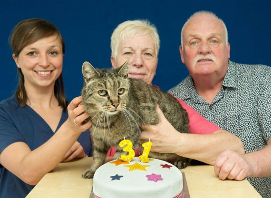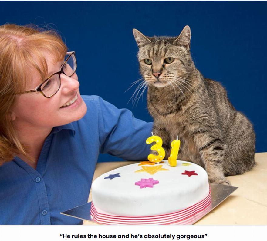 Αυτό το τιγρέ γατάκι, έχει πάρει τον τίτλο ως η γηραιότερη γάτα στον κόσμο, η οποία γιόρτασε τα 31α γενέθλιά του (που ισοδυναμεί με 141 σε ανθρώπινα χρόνια). Το όνομά του είναι Μοσχοκάρυδο και μια μέρα, διάλεξε την οικογένεια του, κάνοντας την εμφάνιση του πριν από περίπου 26 χρόνια.