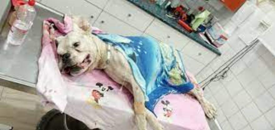 Το κατάλευκο άλλοτε αγέρωχο boxer έδειχνε να ψυχορραγεί μιας και ήταν σε πλάγια θέση χωρίς να έχει καμμία επαφή με το περιβάλλον. Η αναπνοή του ήταν κοιλιακή και είχε σπασμούς. Μεταφέρθηκε στην κλινική της κας Ραχιωτη. Το ζώο κάθε αναπνοή που έπαιρνε έδειχνε ότι θα ήταν η τελευταία του.