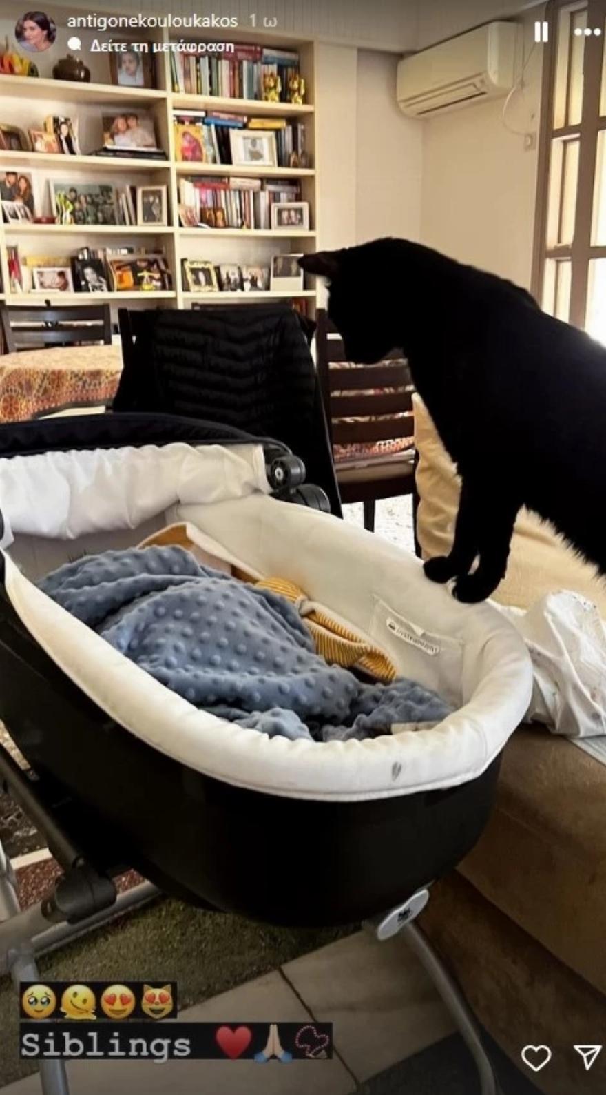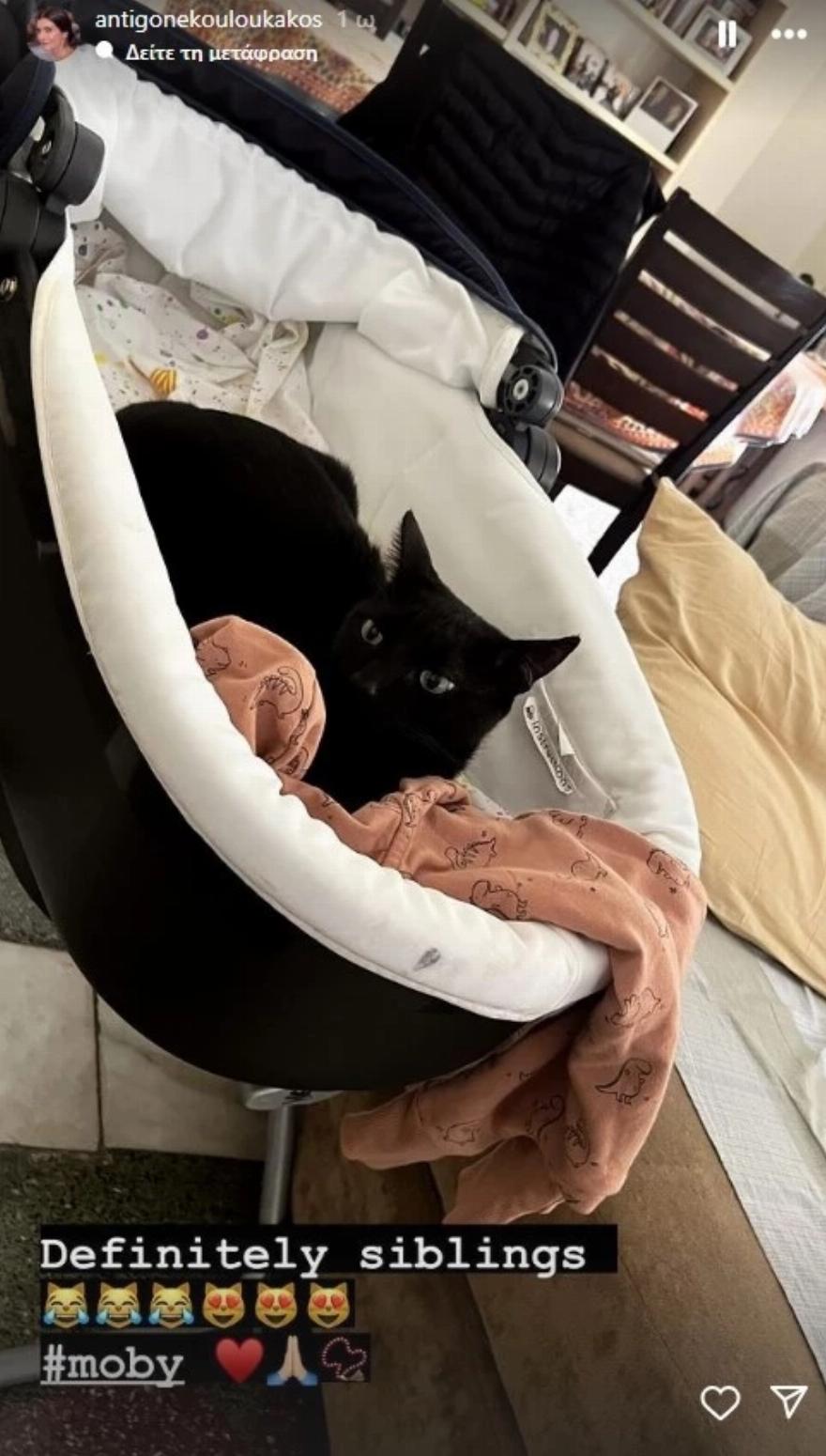 Σήμερα, μας έδειξε πώς τα πηγαίνει με τον μεγάλο του αδερφό, που δεν είναι άλλος από τον κατάμαυρο γάτο της οικογένειας, Μόμπι.