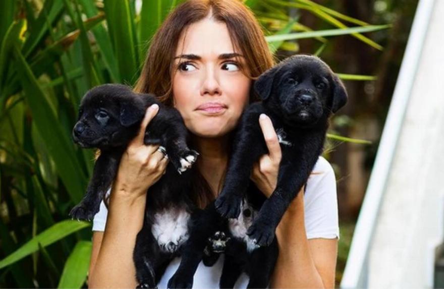 Στη φωτογραφία μας δείχνει με ιδιαίτερο ενθουσιασμό και χαρά δύο κουταβάκια που γέννησε η σκυλίτσα της η Ρόζα. Όμως αυτόν τον ενθουσιασμό δεν συμμερίστηκαν πολλοί, οι οποίοι την κατέκριναν για αυτή τη φωτογραφία.