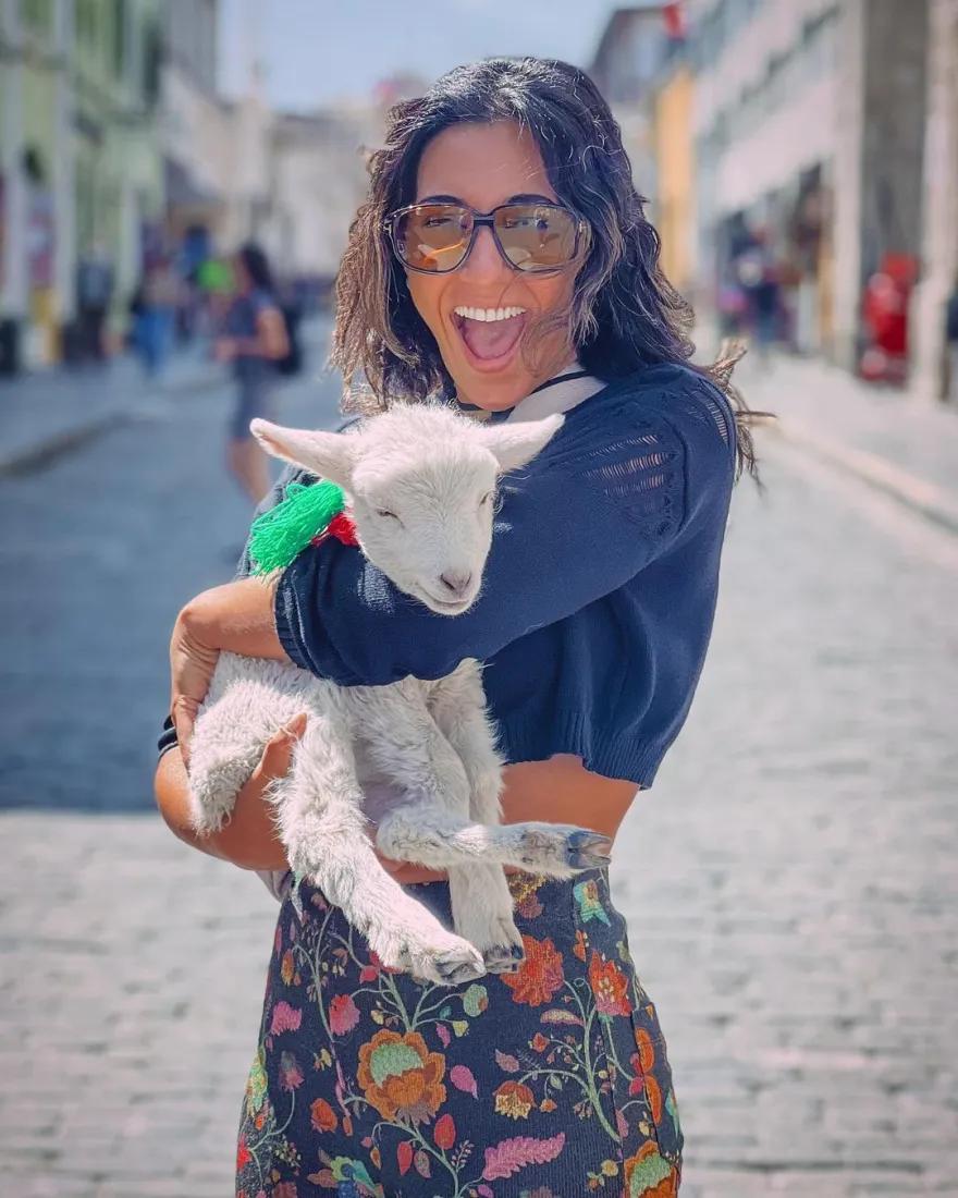 Η ηθοποιός μοιράστηκε με τους 348.000 ακολούθους της στο Instagram, δύο φωτογραφίες, στις οποίες εμφανίζεται η ίδια φανερά ενθουσιασμένη, τη στιγμή που κρατά στην αγκαλιά της ένα μωρό Αλπακά.