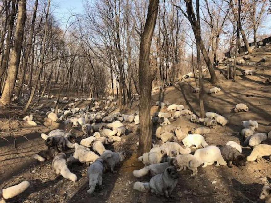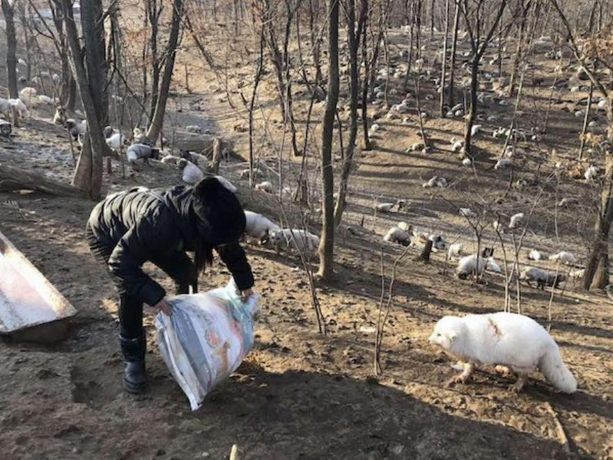 Βίντεο με τις λευκές αλεπούδες να απελευθερώνονται από τα μικροσκοπικά κλουβιά που ζούσαν δείχνουν τις αλεπούδες να αφήνονται ελεύθερες σε ένα βουδιστικό φυτώριο, το προσωρινό καταφύγιο που θα τις φιλοξενήσει μέχρι να κατασκευαστεί γι’ αυτές ένα ειδικό κλουβί από τους διασώστες τους στην Κίνα.