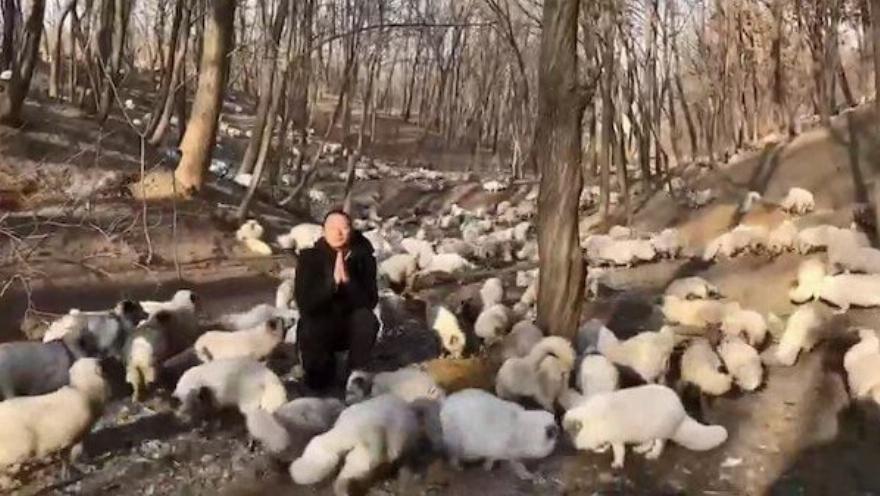 Ένα βίντεο δείχνει έναν βουδιστή μοναχό να γονατίζει ανάμεσα στις μόλις απελευθερωμένες αλεπούδες.