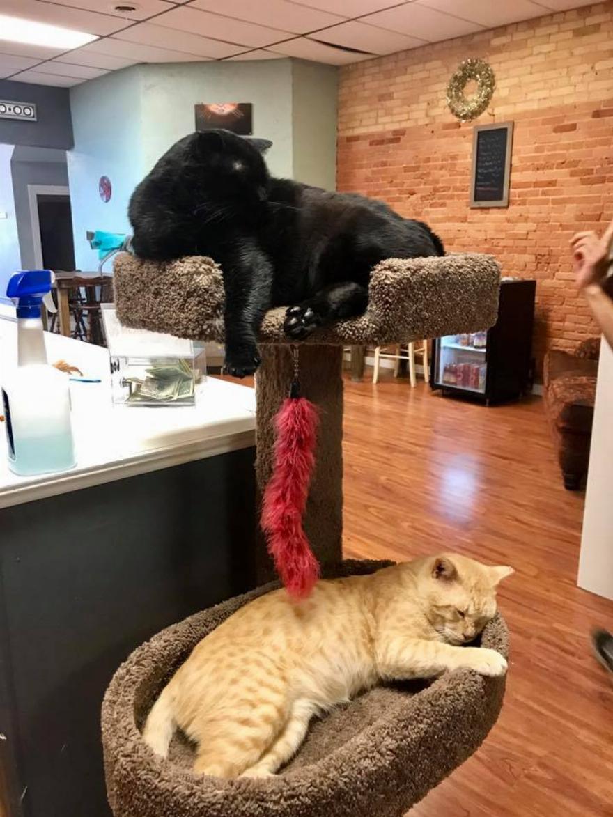 Κρύβει λίγο χρόνο για ύπνο ανάμεσα στη σειρά της κάθε γάτας.