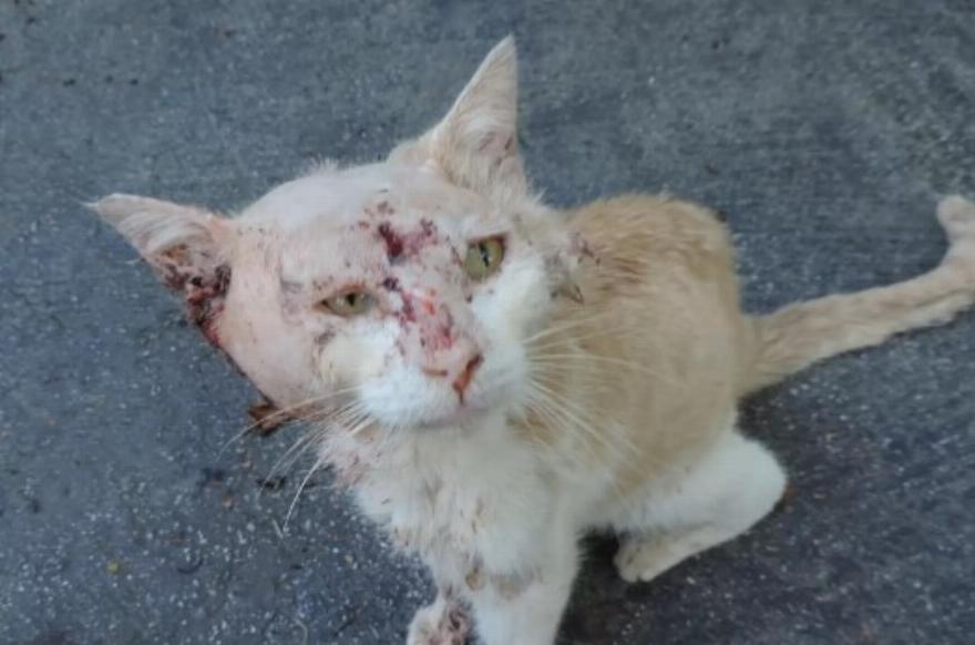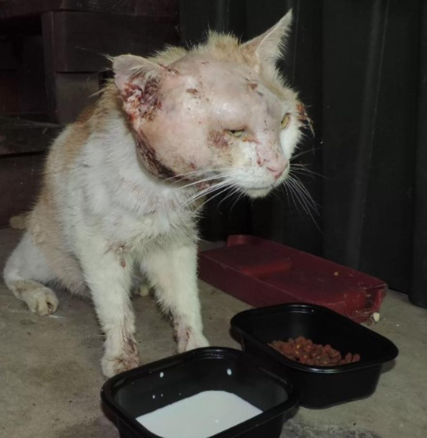 Ο καημένος ο γάτος έμοιαζε σαν να είχε εμπλακεί σε καυγά ή να τον είχε χτυπήσει αυτοκίνητο και η κατάσταση στην οποία βρισκόταν ήταν απολύτως σπαρακτική. Η Latham κατάλαβε αμέσως ότι αν τον άφηνε έξω σε αυτή την κατάσταση, δεν θα τα κατάφερνε, οπότε τον έφερε γρήγορα μέσα και προσπάθησε να τον καθαρίσει όσο καλύτερα μπορούσε. Του έφτιαξε ένα μαλακό κρεβάτι για να χαλαρώνει και την επόμενη μέρα τον πήγε εσπευσμένα στον κτηνίατρο, ελπίζοντας ότι δεν ήταν πολύ αργά για να τον βοηθήσει.