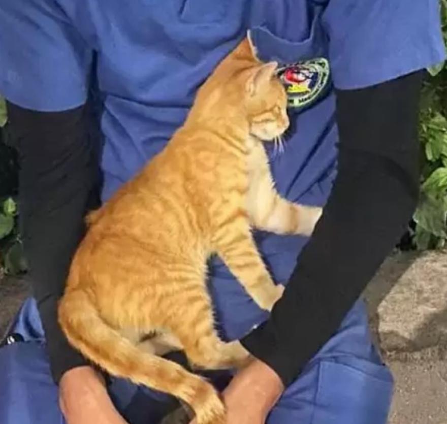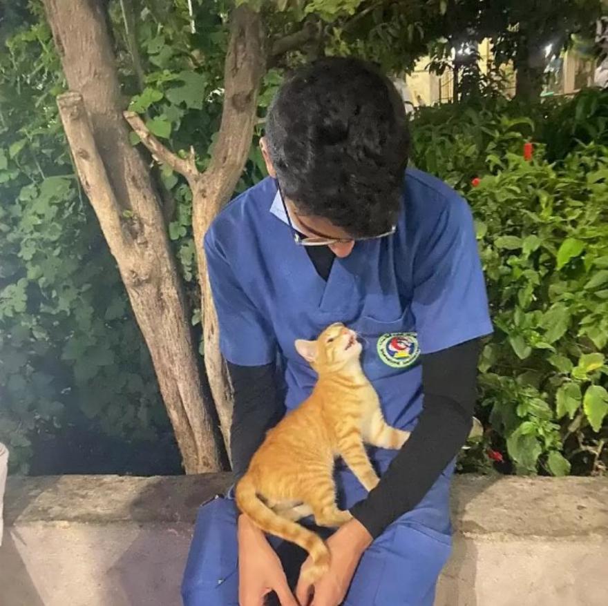 Ο εκπαιδευόμενος νοσηλευτής έμεινε ακίνητος ενώ η γάτα τον αγκάλιαζε και κοιμόταν στα γόνατά του για περίπου 15 με 20 λεπτά. Όταν η μικρή αδέσποτη αποφάσισε ότι η δουλειά της είχε τελειώσει, σηκώθηκε και απομακρύνθηκε.