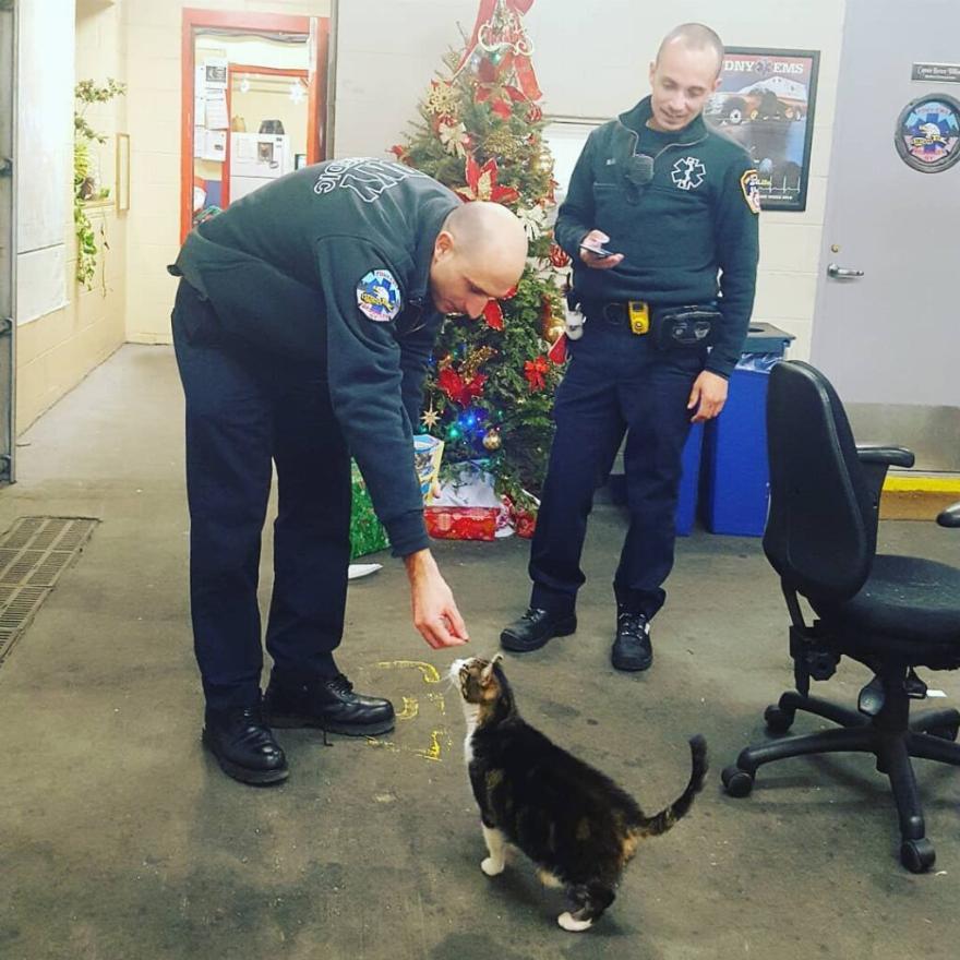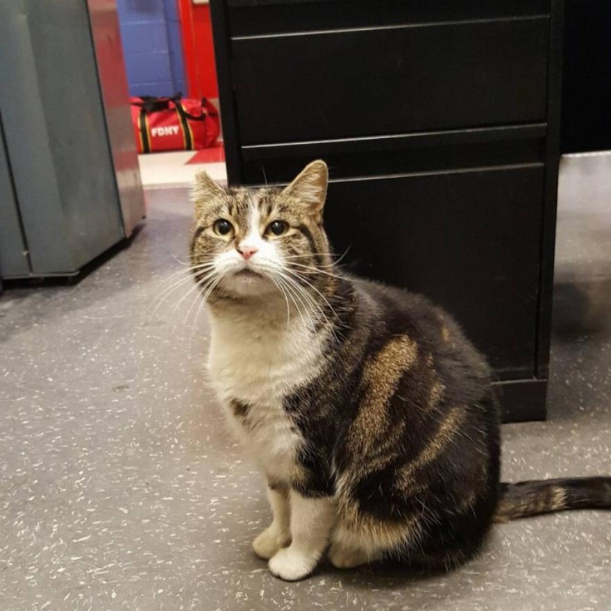 Μια μέρα πριν από δύο χρόνια, μια αδέσποτη γάτα χωρίς όνομα περιπλανήθηκε στον σταθμό 57 της Πυροσβεστικής Υπηρεσίας στη Νέα Υόρκη. Οι πυροσβέστες την καλωσόρισαν με τρίψιμο της κοιλιάς και χάιδεμα του κεφαλιού και σύντομα βγήκε έξω και ζητούσε από όλους γύρω της πολλές περιποιήσεις.