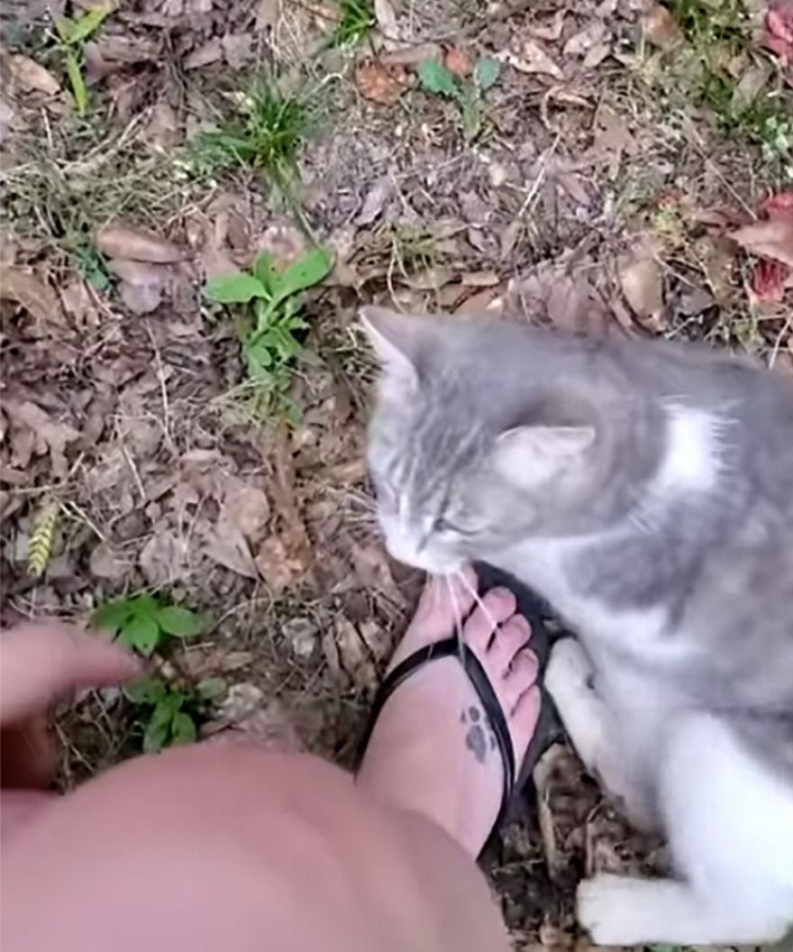 Αν και η γάτα ήταν λίγο απόμακρη, μια μέρα κατάφερε να πλησιάσει αρκετά ώστε η Shea να τη χαϊδέψει, να της δώσει φαγητό και να αναπτύξει έναν ευχάριστο δεσμό μαζί της.