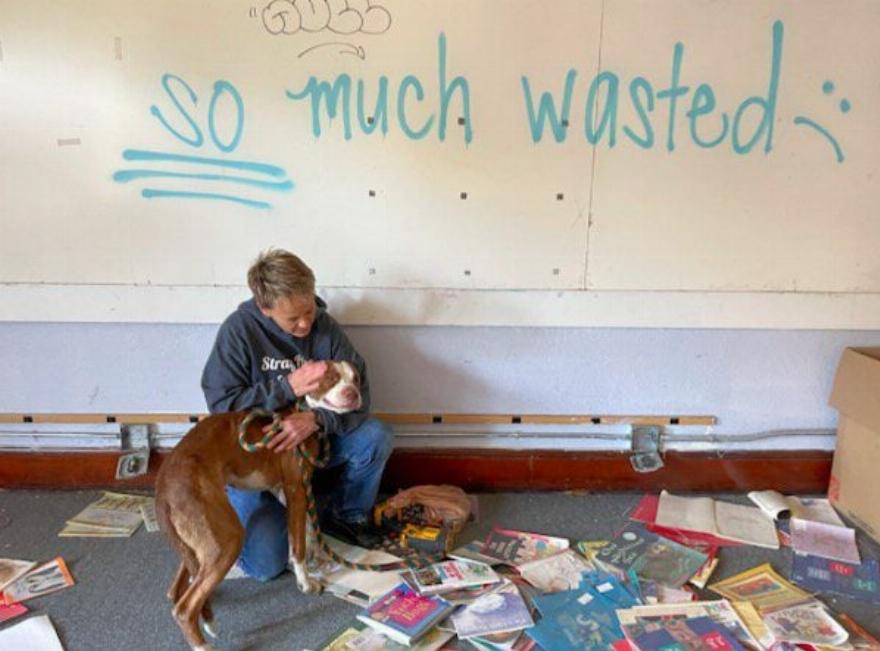 Πριν φύγουν, η ομάδα έλεγξε όλο το σχολείο για να βεβαιωθεί ότι δεν υπήρχαν άλλα σκυλιά παγιδευμένα μέσα.