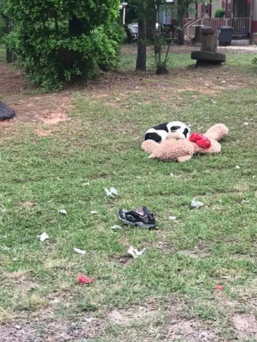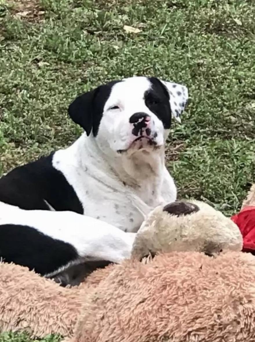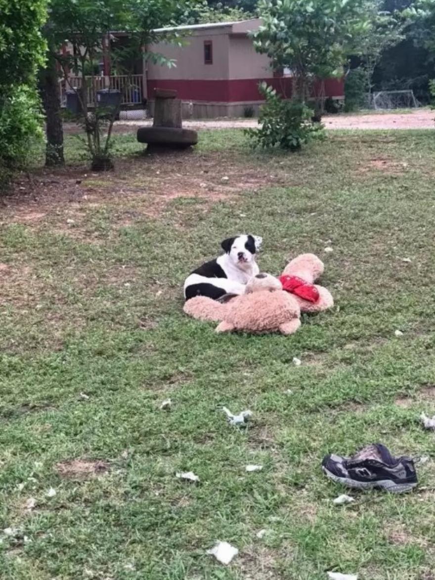 Την περασμένη εβδομάδα, η Kourtnee Blount, μια ανεξάρτητη διασώστρια σκύλων, περνούσε με το αυτοκίνητο από μια γειτονιά στο Montgomery του Τέξας, όταν εντόπισε τον σκύλο αγκαλιά με το αρκουδάκι στο γρασίδι ανάμεσα σε δύο ιδιοκτησίες.