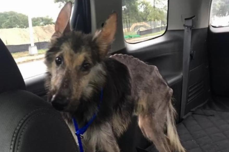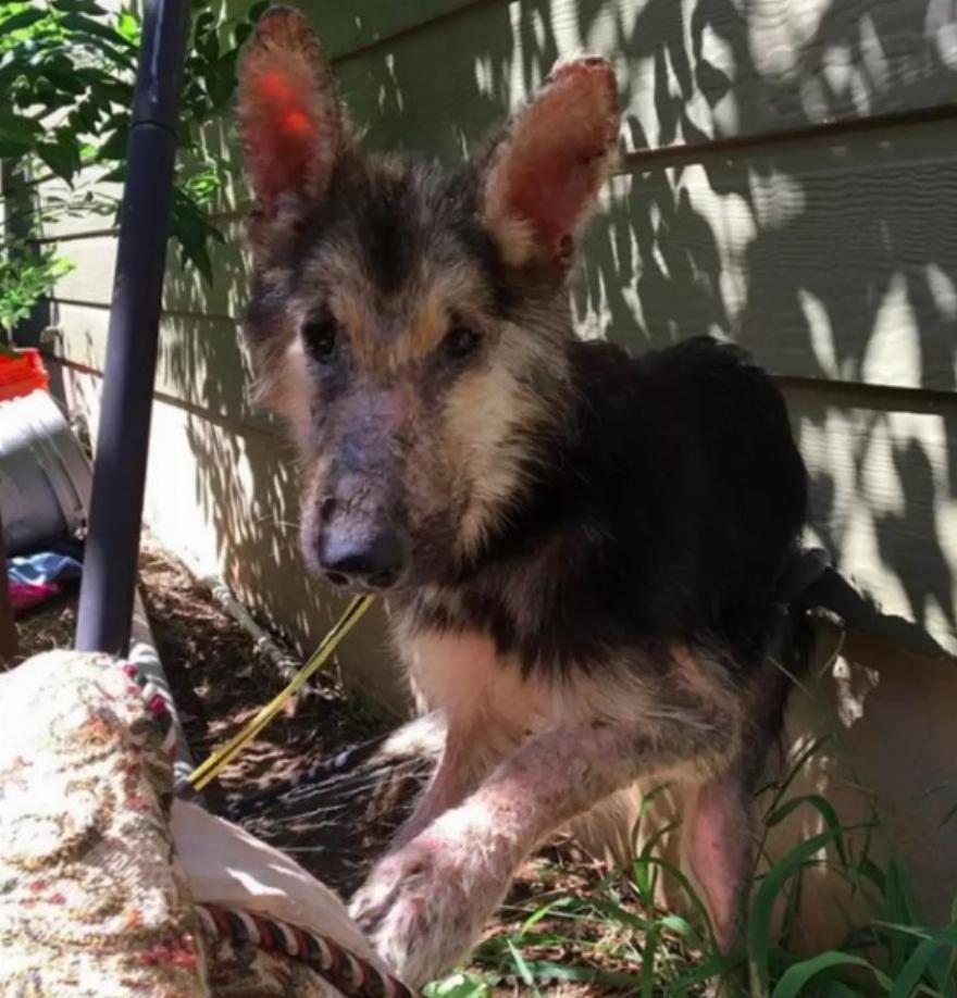Μια εξέταση αποκάλυψε ότι ο νεαρός σκύλος ήταν υποσιτισμένος, ηλιοκαμένος και αφυδατωμένος, ενώ είχε τη χειρότερη περίπτωση ψώρας που είχε δει ποτέ ο κτηνίατρος.