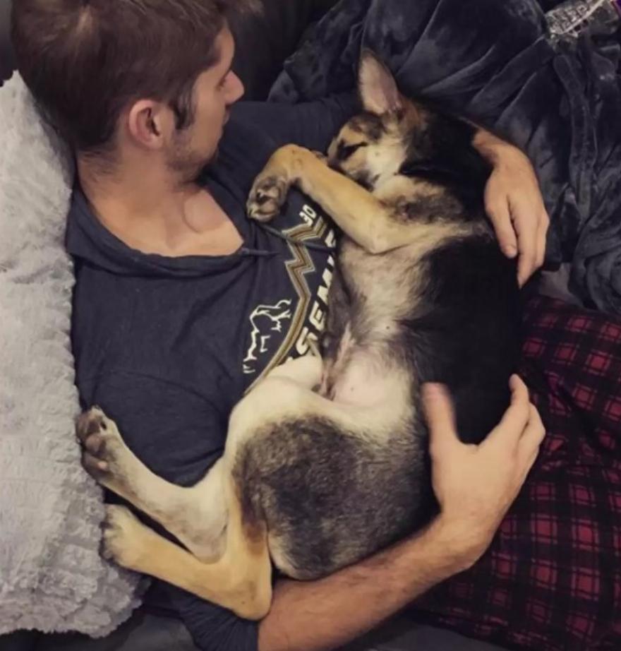 Η Τέρνερ φοβήθηκε να αγγίξει το σκελετωμένο σκυλί, οπότε έβγαλε το πουλόβερ της και το τύλιξε γύρω από το μικρό του σώμα των 18 κιλών, προτού το σηκώσει προσεκτικά από το κρεβάτι. Η Turner σοκαρίστηκε από το πόσο έμπιστος ήταν ο νεαρός σκύλος. “Ακολούθησε ακριβώς δίπλα μου καθώς περπατούσαμε μέχρι το αυτοκίνητό μου, όπου αμέσως αποκοιμήθηκε, νιώθοντας επιτέλους ασφαλής”, είπε.