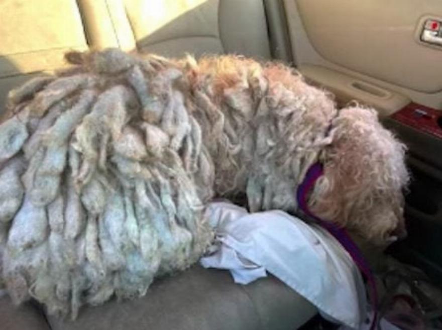 Η Ράιλι, όπως την ονόμασαν, κρύωνε πολύ και φοβόταν πολύ για να περπατήσει. Το τρίχωμά της δεν ήταν μόνο καλυμμένο με χιόνι, αλλά και με ράστα και επώδυνες μοκέτες.