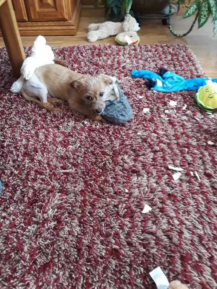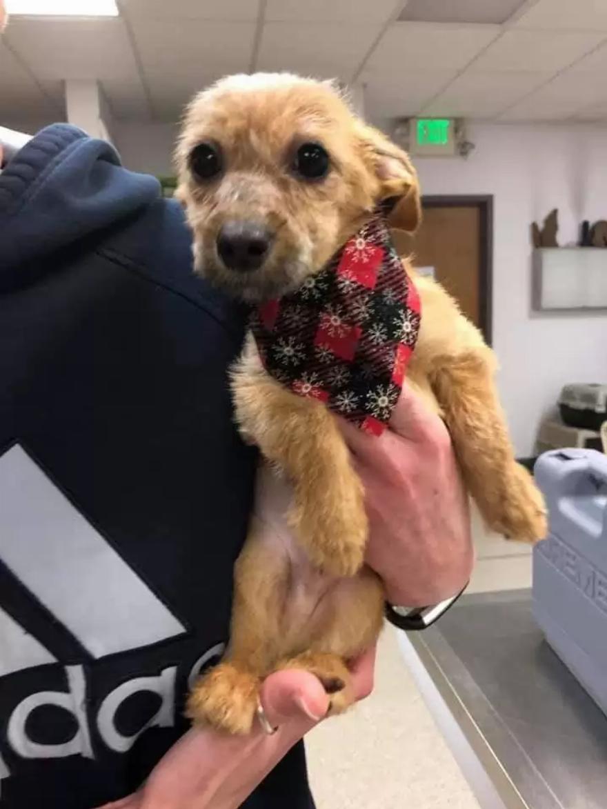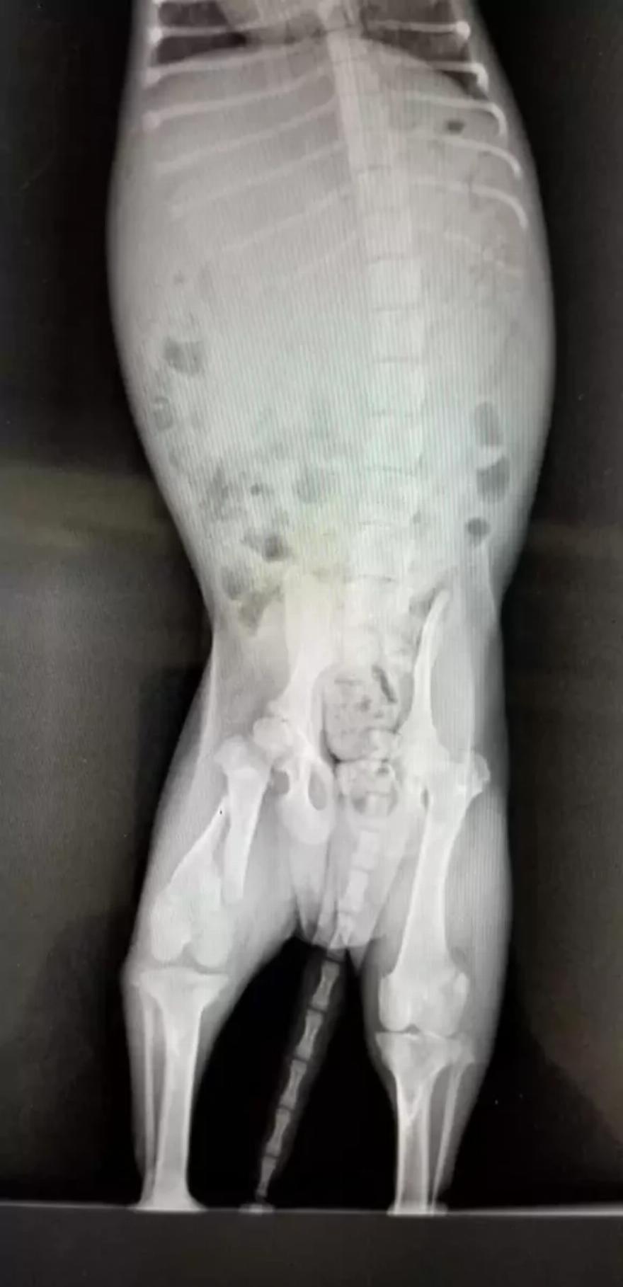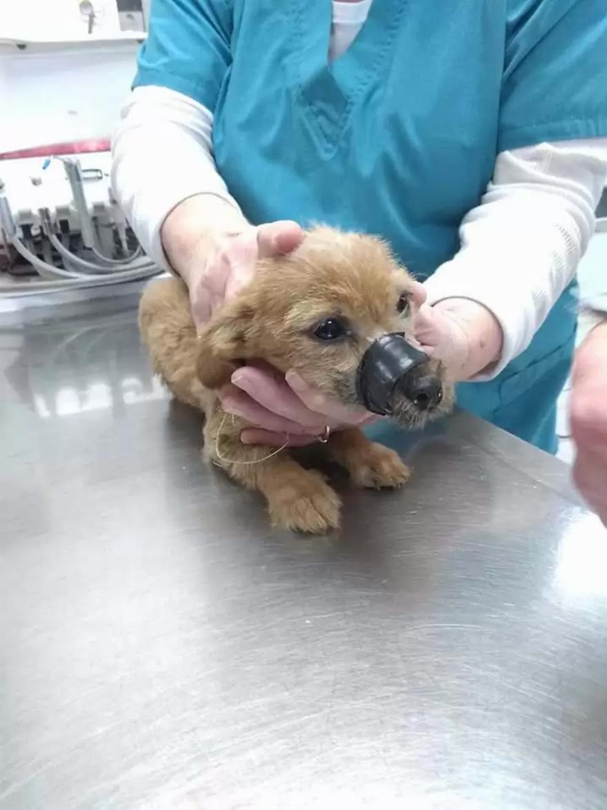 Η ιατρική ομάδα αφαίρεσε την ταινία και χορήγησε στο περίπου 4 μηνών κουτάβι αντιβιοτικές ενέσεις και αλοιφή. Στη συνέχεια του έστησαν ένα κρεβάτι με κουβέρτες και λούτρινα ζωάκια.