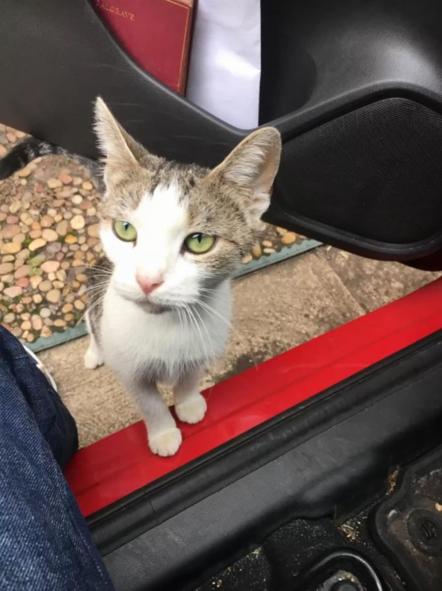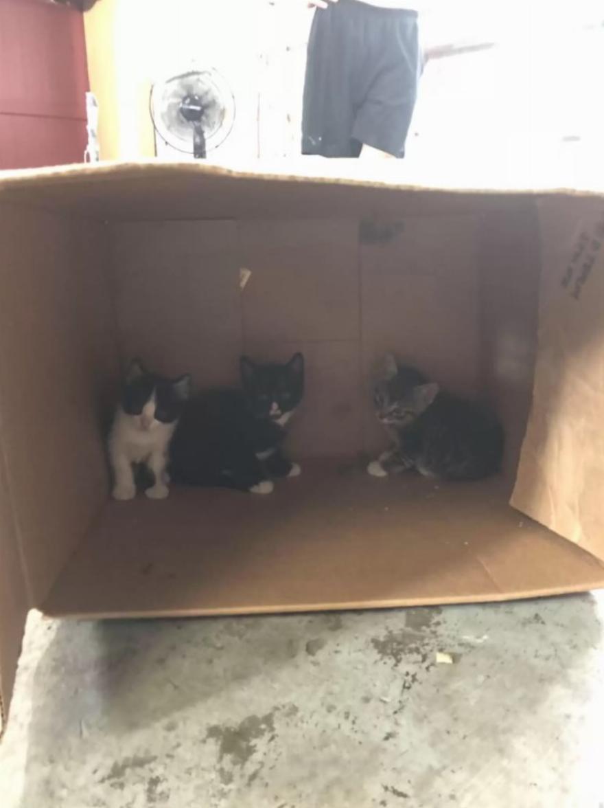 … και σοκαρίστηκε όταν είδε την Αθηνά και τρία μικρά γατάκια, να κάνουν βόλτα μαζί. Έβγαλε γρήγορα μια φωτογραφία για την κόρη του, η οποία είναι φανατική φιλόζωη, και αμέσως προσφέρθηκε να έρθει να τον βοηθήσει να τα πιάσει όλα και να τα φέρει μέσα.