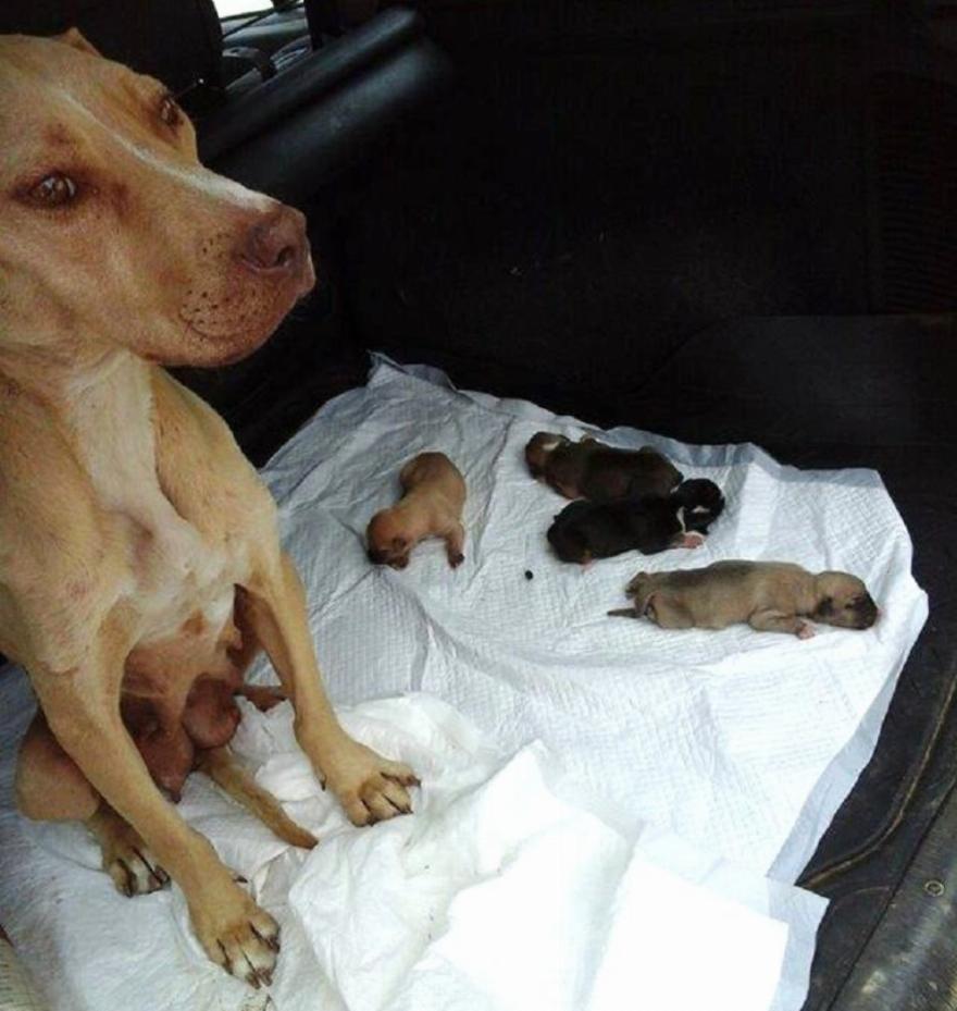 Αν και εγκαταλειμμένη σε ένα δάσος στη μέση της ερήμου, μόνη και δεμένη σε ένα δέντρο, η Λάρα τελικά γέννησε τέσσερα κουτάβια.