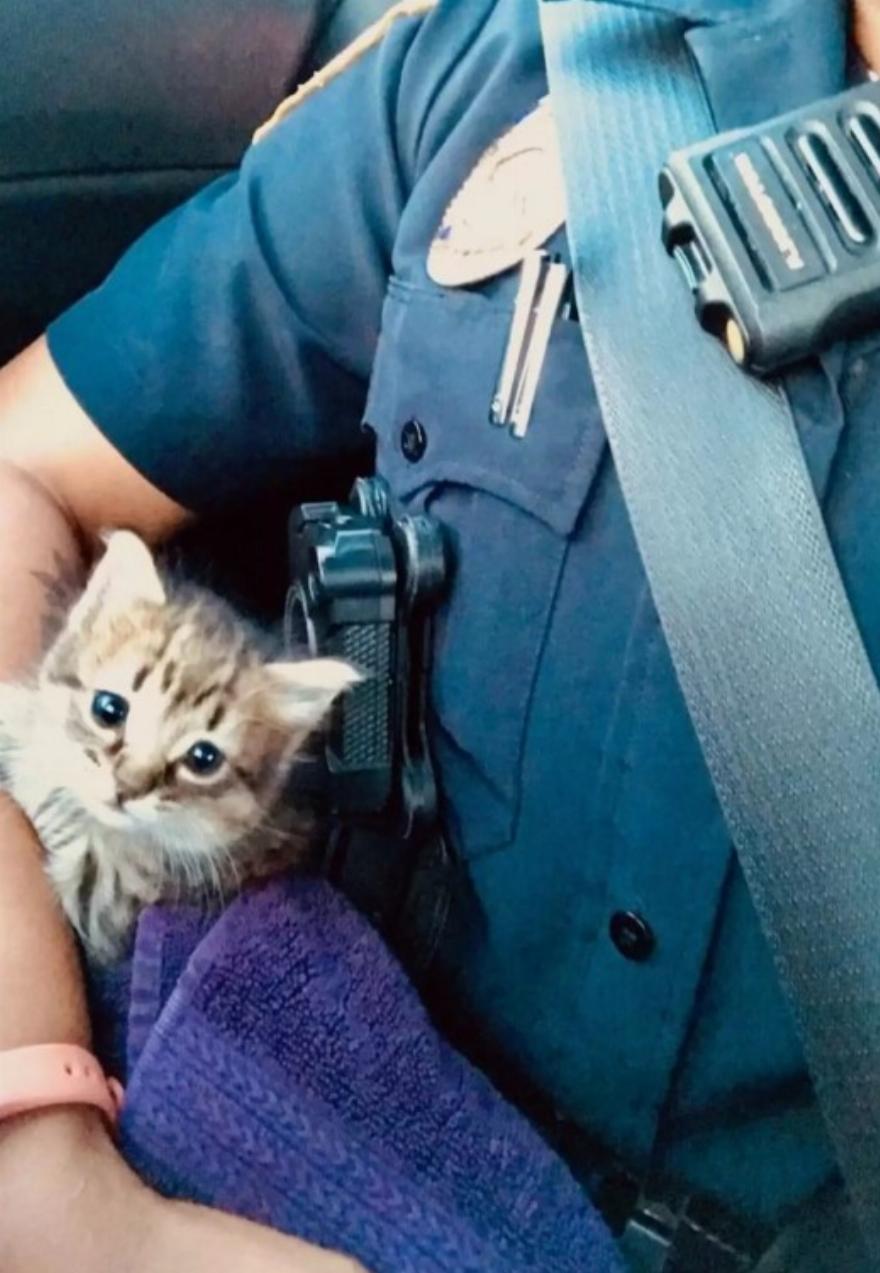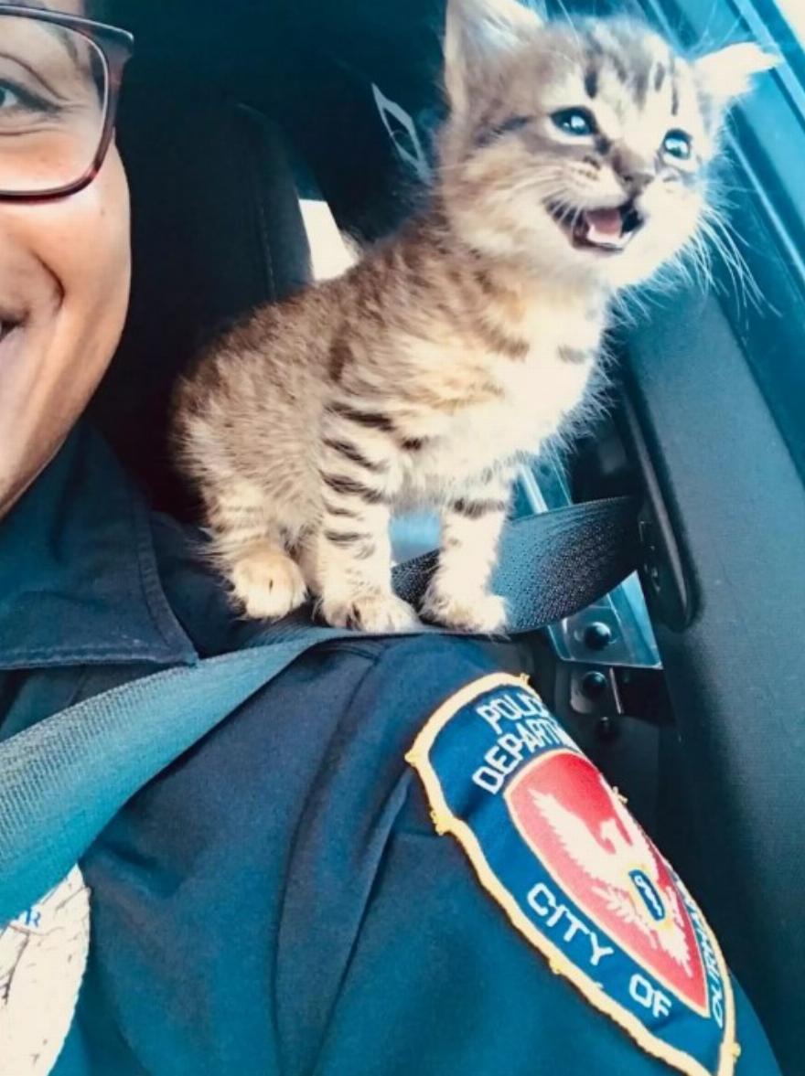 Ενώ έκαναν περιπολία ρουτίνας σε μια γειτονιά, η Rowsey και ο συνεργάτης της εντόπισαν ένα μικροσκοπικό γατάκι που ήταν ολομόναχο, φοβισμένο και σε κίνδυνο. Οι αστυνομικοί αποφάσισαν να σταματήσουν, αφήνοντας τα πάντα για να δώσουν ένα χέρι βοήθειας στο γατάκι.