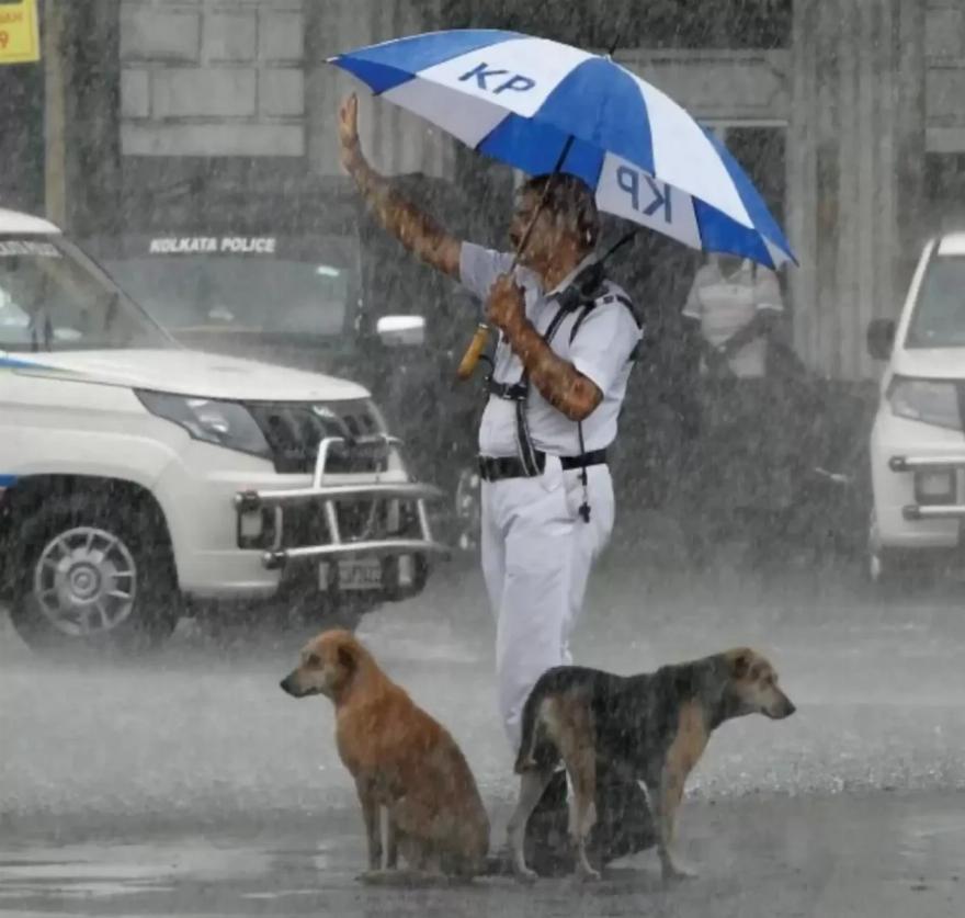 Έντονες βροχοπτώσεις είχαν πλημμυρίσει τους δρόμους της Καλκούτα στην Ινδία, αφήνοντας ανθρώπους και ζώα να αναζητούν ένα ασφαλές μέρος μέσα στην καταιγίδα. Έτσι, φάνηκε φυσικό για τον αστυφύλακα Tarun Kumar Mandal να βοηθήσει όσους έχουν ανάγκη.