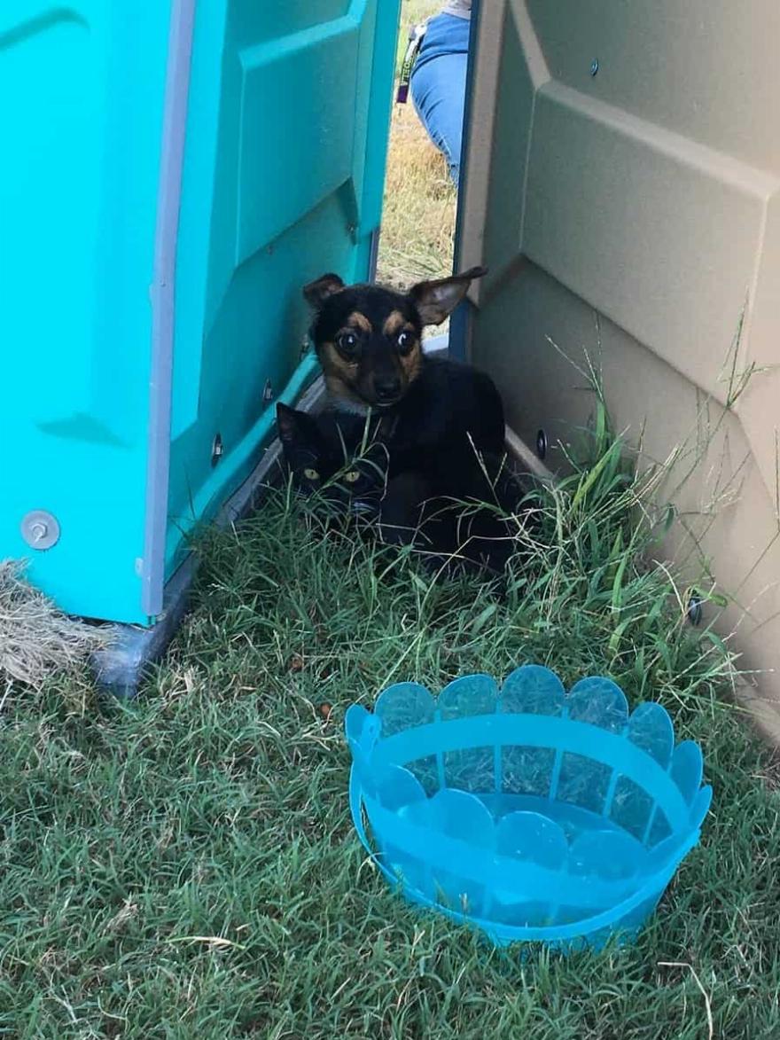 Ένας καλός Σαμαρείτης συγκλονίστηκε όταν έπεσε πάνω σε 2 δεμένες ψυχές που είχαν ανάγκη σωτηρίας. Ήταν στο Hampton Soccer Park στο Χάμπτον της Βιρτζίνια όπου ανακάλυψαν το ζευγάρι. Τα γούνινα μωρά είχαν στριμωχτεί ανάμεσα σε δύο φορητές τουαλέτες.
