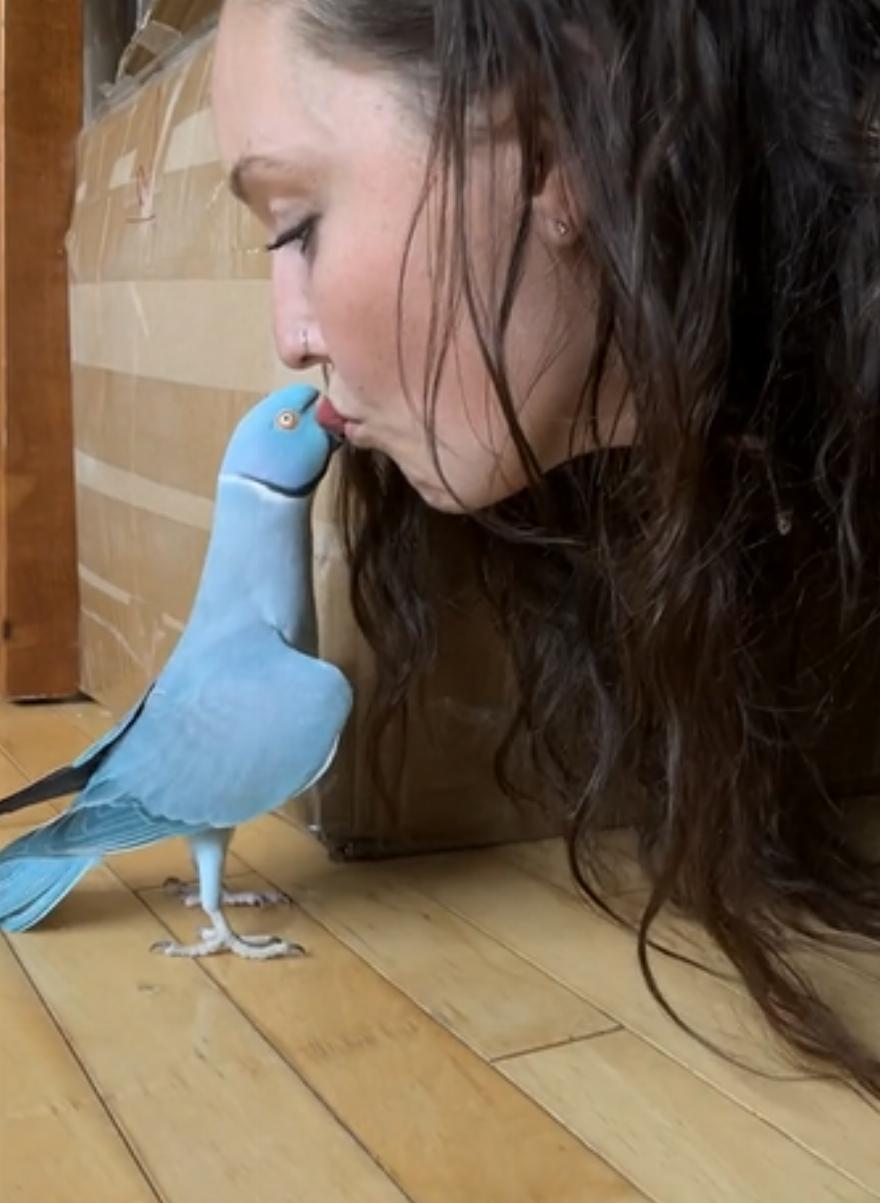 @tamarasbluechicken Kiwi melts my heart 🥹 #parrot #kiwi #bluebird #cute #talkingparrot #indianringneck #irn #love #canada ♬ original sound – BILLIE EILISH