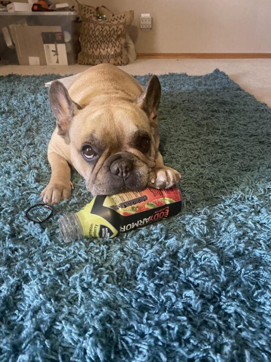 Το γαλλικό μπουλντόγκ Mailo δεν είναι τόσο επιλεκτικό όσον αφορά την τροφή του, αλλά του άρεσε ένα πολύ μοναδικό είδος παιχνιδιού. Στην πραγματικότητα, δεν είναι καθόλου παιχνίδι για σκύλους! Η μαμά του, Karla, ξεκίνησε εν αγνοία του την εμμονή του αφήνοντάς τον να παίζει με ένα άδειο μπουκάλι νερού- τώρα είναι το αγαπημένο του παιχνίδι. Ο ενθουσιασμός του για τα μπουκάλια μεγέθους 1 λίτρου είναι υπερβολικός!