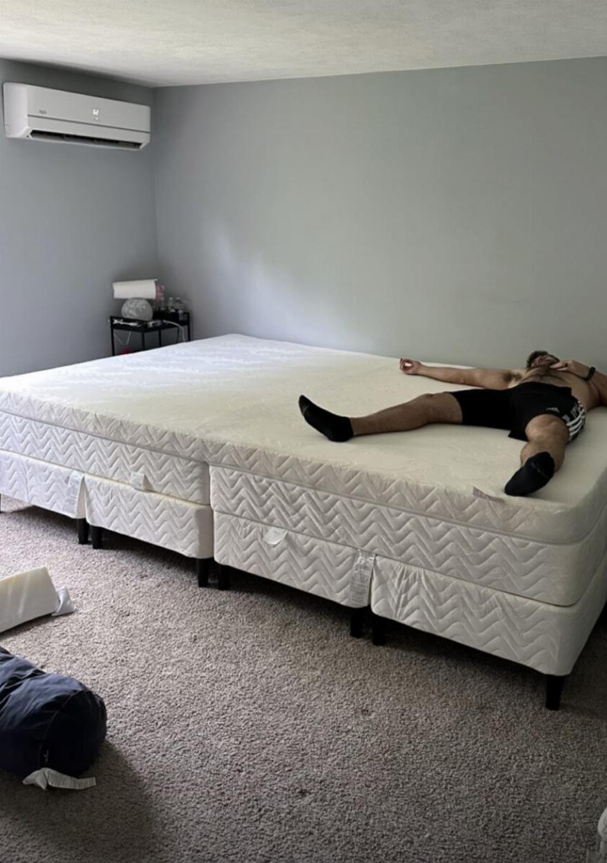 Ένα κομμάτι της ψευδαίσθησης καταστράφηκε όταν είδαμε ότι ήταν πολλά μικρά κρεβάτια συναρμολογημένα, αλλά τώρα θέλω απεγνωσμένα να μάθω–πώς βρήκαν ένα στρώμα ή ένα κρεβάτι που να είναι αρκετά μεγάλο;